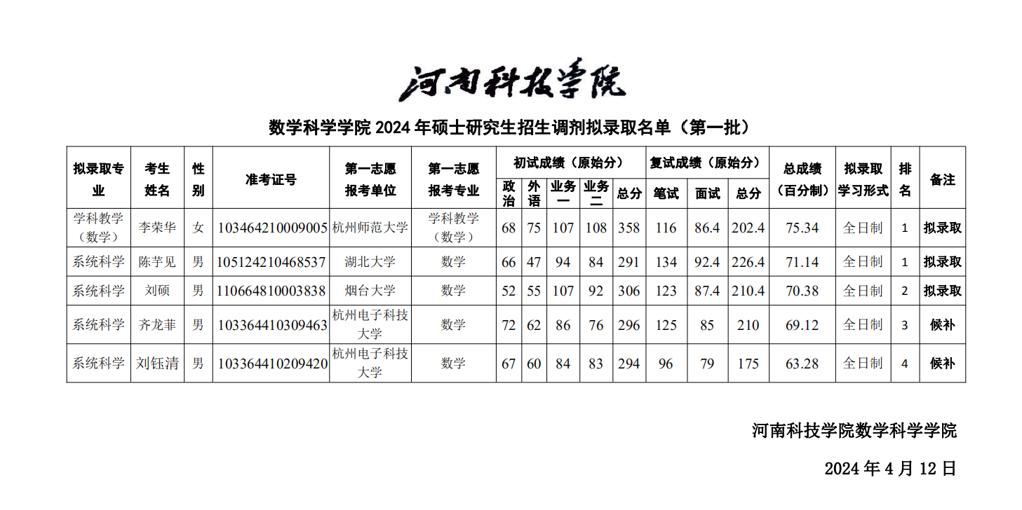 嗨皮漫画 2024年硕士研究生招生调剂拟录取名单(第一批)