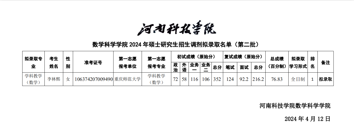 嗨皮漫画 2024年硕士研究生招生调剂拟录取名单(第一批)